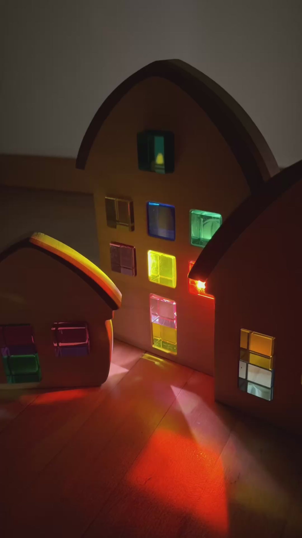 Nutzen Sie die Häuser auch in Kombination mit anderen Spielmaterialien: Bauklötze, Figuren, Murmeln oder Lichttisch-Zubehör eröffnen zusätzliche Spiel- und Lernwelten.
